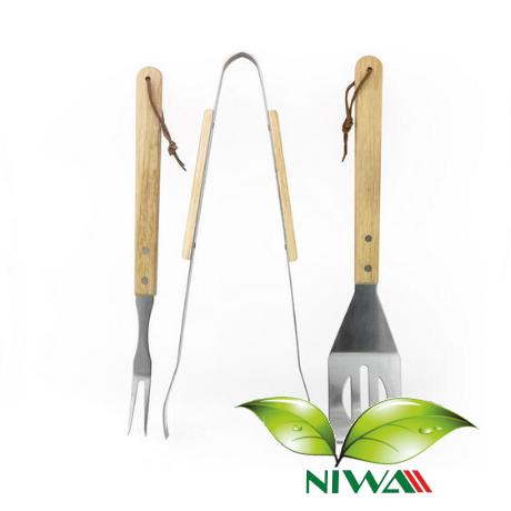 Elegancki zestaw akcesoriów do grilla AE189 Mirpol to niezbędne elementy wyposażenia podczas rodzinnych przyjęć na świeżym powietrzu lub spotkań z przyjaciółmi. Wykonane z wytrzymałej stali nierdzewnej w srebrnym kolorze oraz jasnego naturalnego drewna doskonale się prezentują i ułatwią wygodne przewracanie czy podawanie potraw.